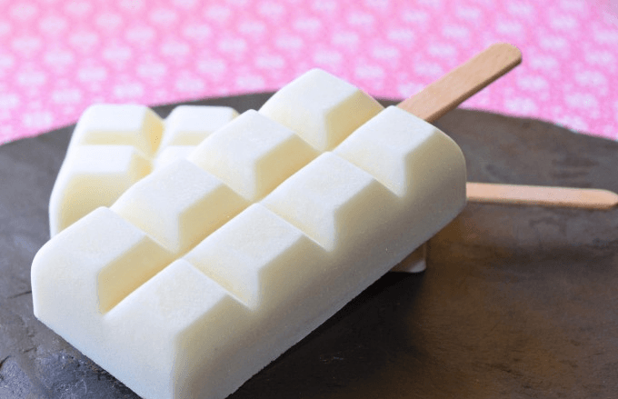 Cuando el preparado del helado pierda algo de temperatura, viértelo en los moldes, pueden ser de la forma que desees, y no olvides colocar el palito. Deja que se enfríen totalmente a temperatura ambiente.