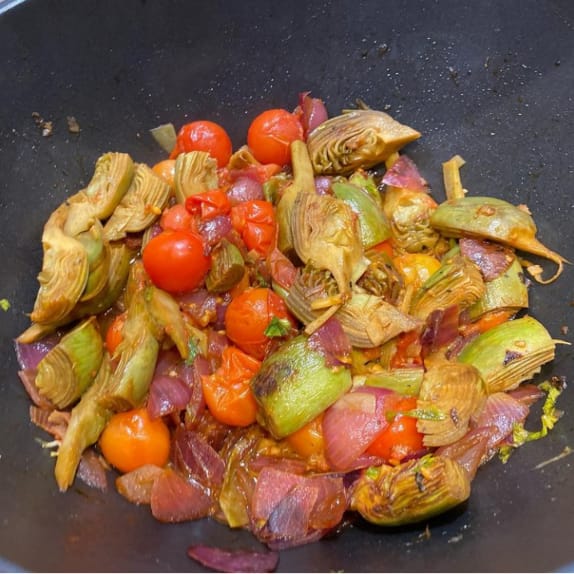 ➡️Añadir las alcachofas y tapar, esto es muy importante! Añadir sal.