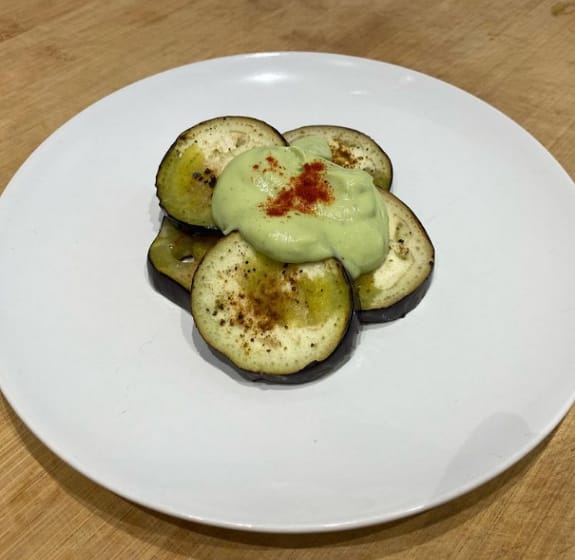 BERENJENAS CON SALSA DE YOGUR Y AGUACATE