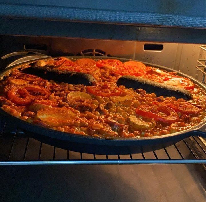 ▶️Poner la paellera en el horno (espero que la vuestra se pueda meter) y dejar que se haga y tueste el arroz.